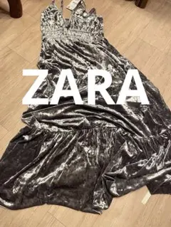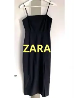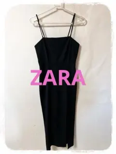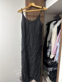 ザラ ZARA キャミソールワンピース ドレス L 黒 ビーズストラップ 薄手