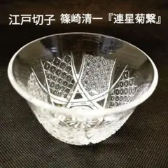 青色のカットガラス製の円筒形お猪口、星型の底模様が特徴的。