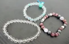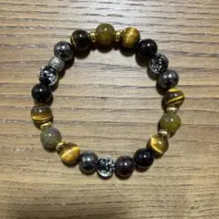 ブラウン系の石の数珠に、シルバー色のスカルがかっこいいブレスレットです。