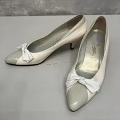 安定感のある6.5cmプレートヒールとリボンデザインのブラックパンプス。
