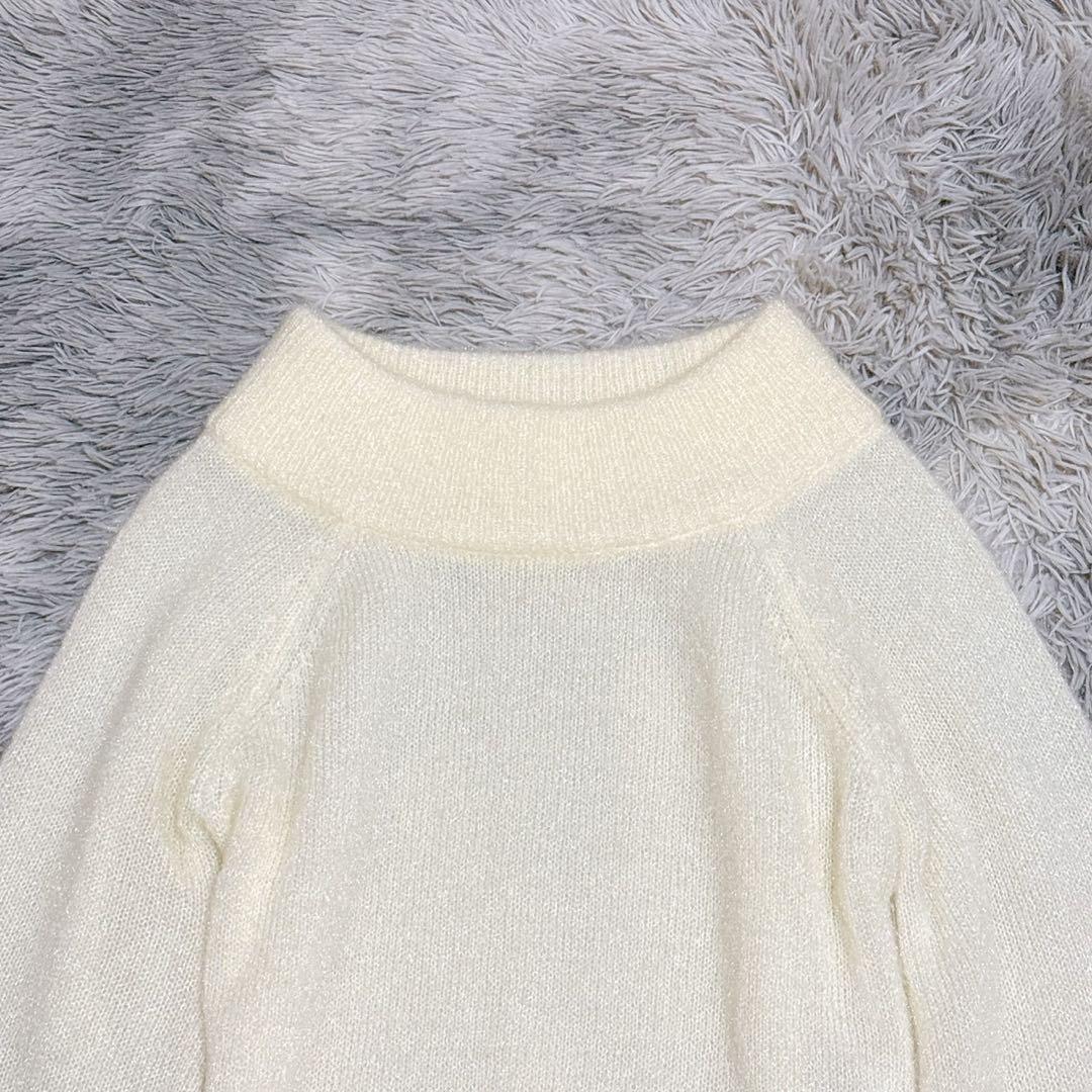 オフオン レディース 長袖ニット M バルーンスリーブ ホワイト 白 無地