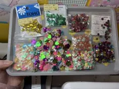 - Color: Multicolored metallic sequins in purple, green, red, blue, and gold.