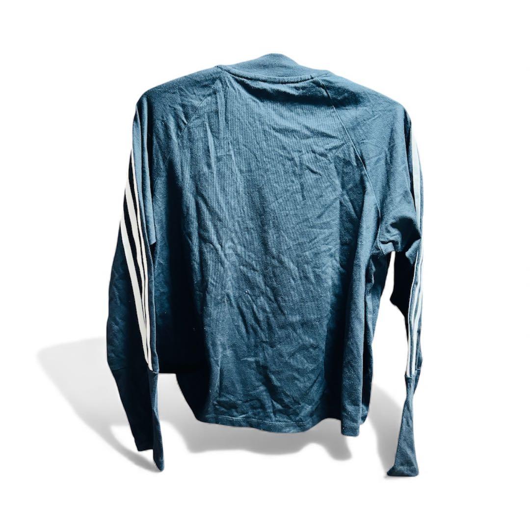 フロントにはadidasロゴ刺繍、袖には定番の3ストライプ。