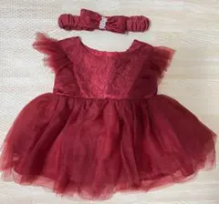 花柄の装飾が施されたスリーブレスのピンクベビードレス。