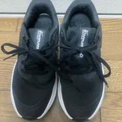 メッシュアッパーとラバーソールのスニーカー、青色。