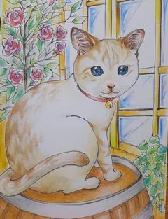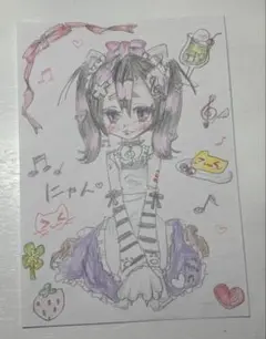 眠る猫 手描きイラスト はがき 猫イラスト 原画 鉛筆画