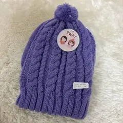 リボンと花柄刺繍が特徴のミント色ニット帽。