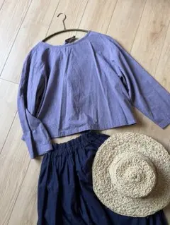 SCARLETTE インド製 長袖 バンドカラー シャツ 総柄 ギャザー フォグ