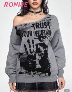 ホワイト 十字架プリント y2k 長袖Tシャツ SHEIN