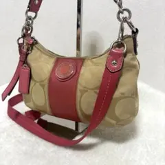 【中古品】COACH コーチ ショルダーバッグ COACHロゴ ピンク ベージュ ポーチ レディース