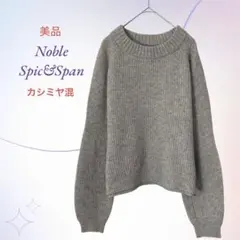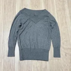 クルーネックのグレー長袖セーター、ルーズフィット。透け感があり。