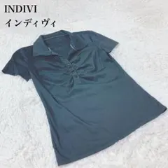 A6461 インディヴィ 半袖ブラウス シャツ ボウタイ ドット 黒 38