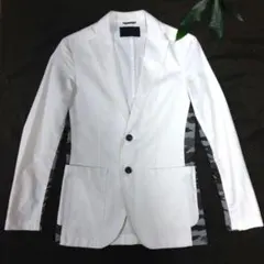 ジュンハシモトより、ジャケットの出品です。サイズ表記は2、平置き採寸で肩幅40.5cm、身幅48.5cm、着丈82.5cm、袖丈64cmです。素人採寸ですので多少の誤差はお許し下さい。状態は未使用品ですが自宅保管品ですので神経質な方や完璧な品物をお求めの方は念のためご購入をお控え下さい。