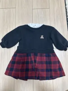このセットは、ケーブル編みのニットベストと花柄のコットンドレスの組み合わせです。フリル付きのデザインが可愛らしさを引き立てます。