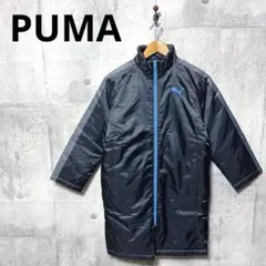 フリース内側のPUMA製ネイビー・レッドベンチコート、フード付きで防寒性抜群。