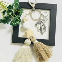 こちら馬,蹄のチャーム、タッセルなどブラック系のお色でまとめたバッグチャーム・キーホルダーになります♡