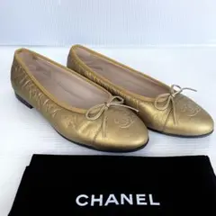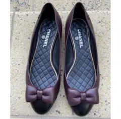 CHANEL バレエシューズ ココマーク リボン フラット37C 23.5