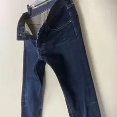 ライトグレーのスリムフィットデニムパンツ、バックポケット付き。