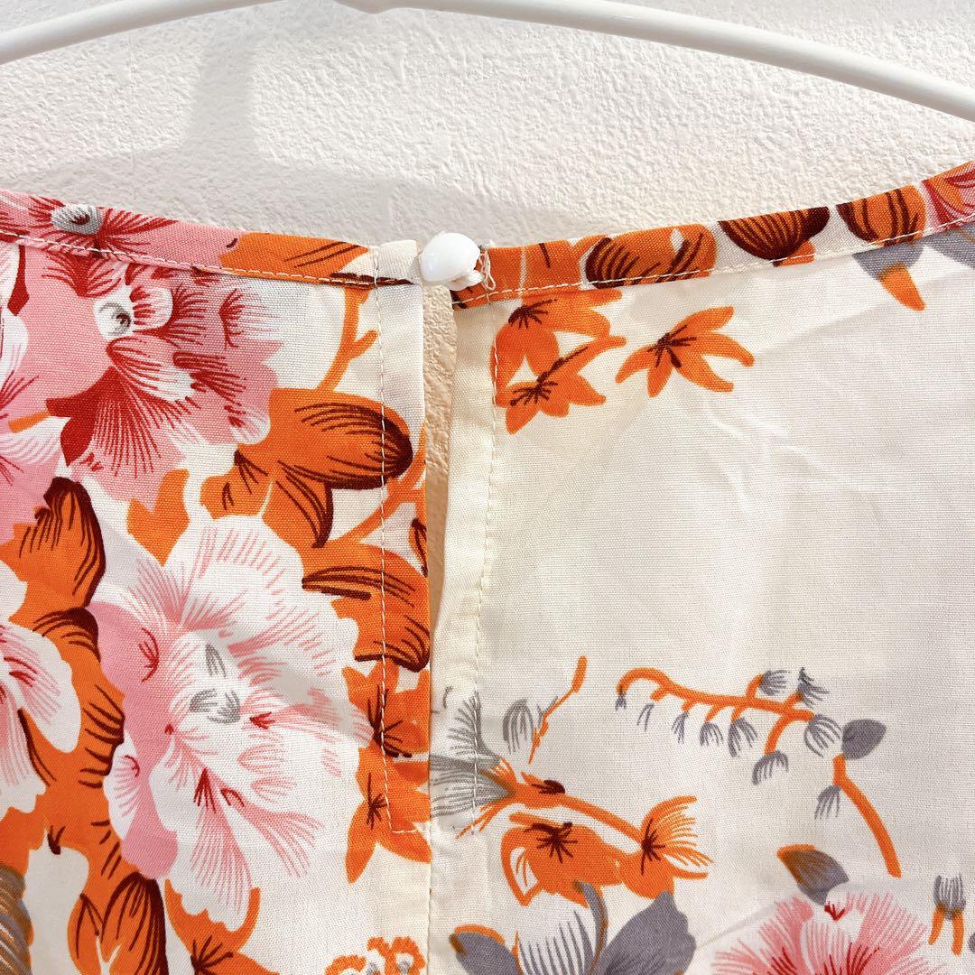 フラワープリントの五分袖ブラウス、Sサイズ。