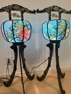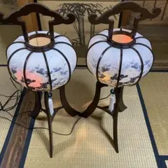 手描きの花柄が美しい和紙製の盆提灯、直径約27cm、2個セット。