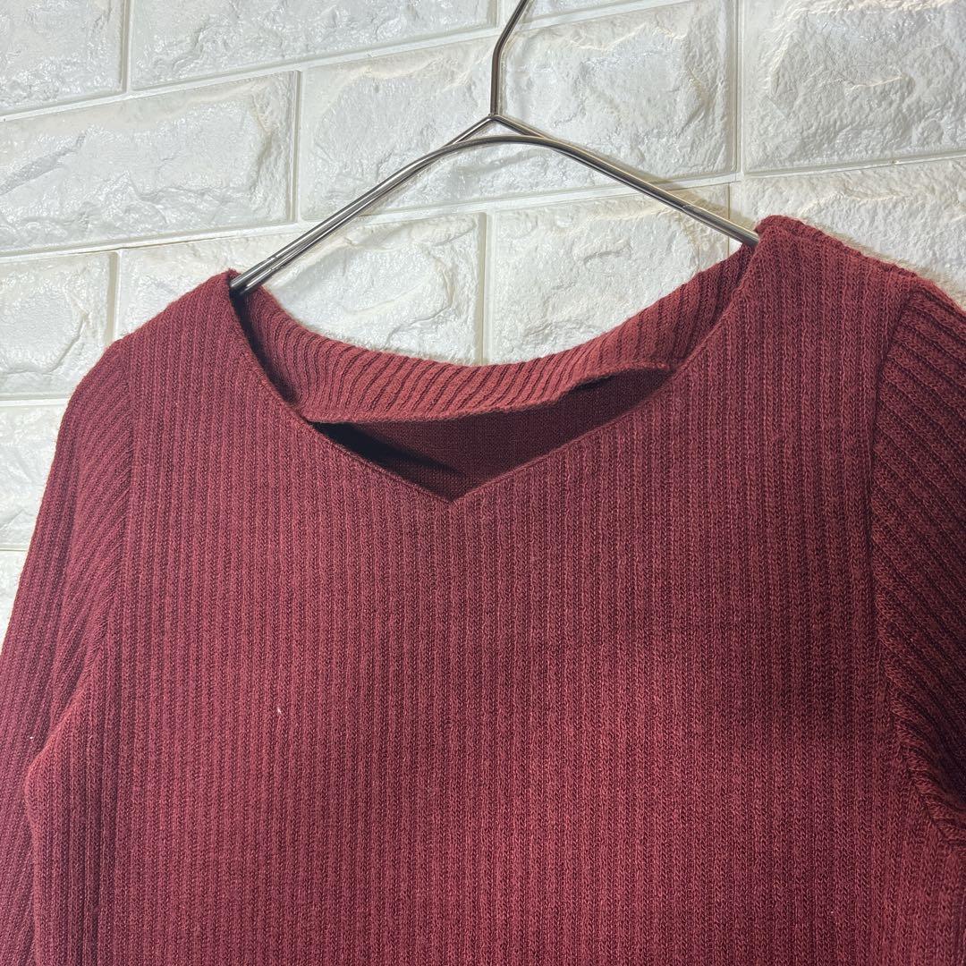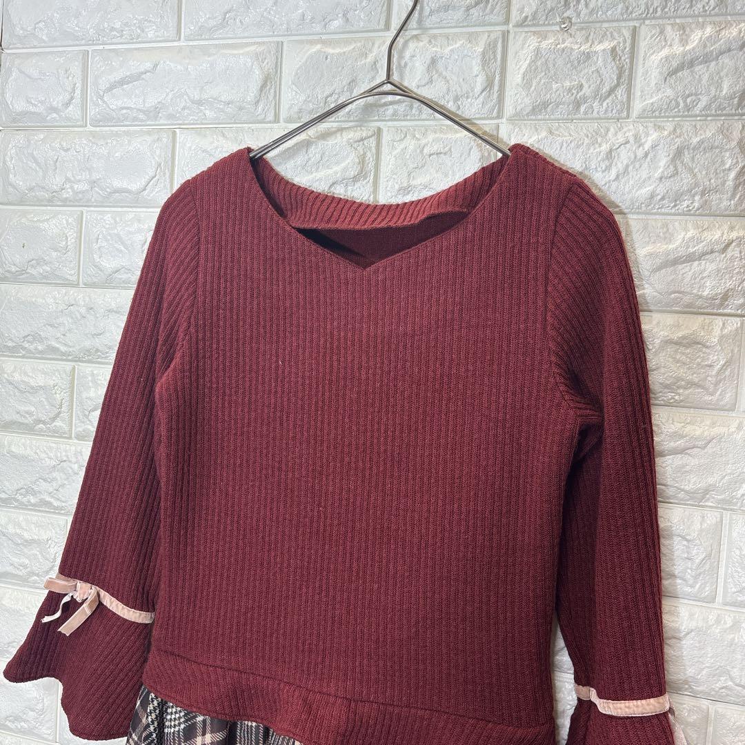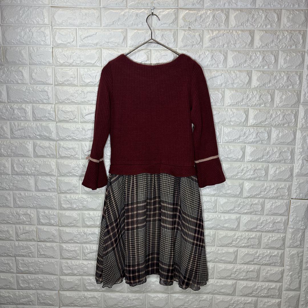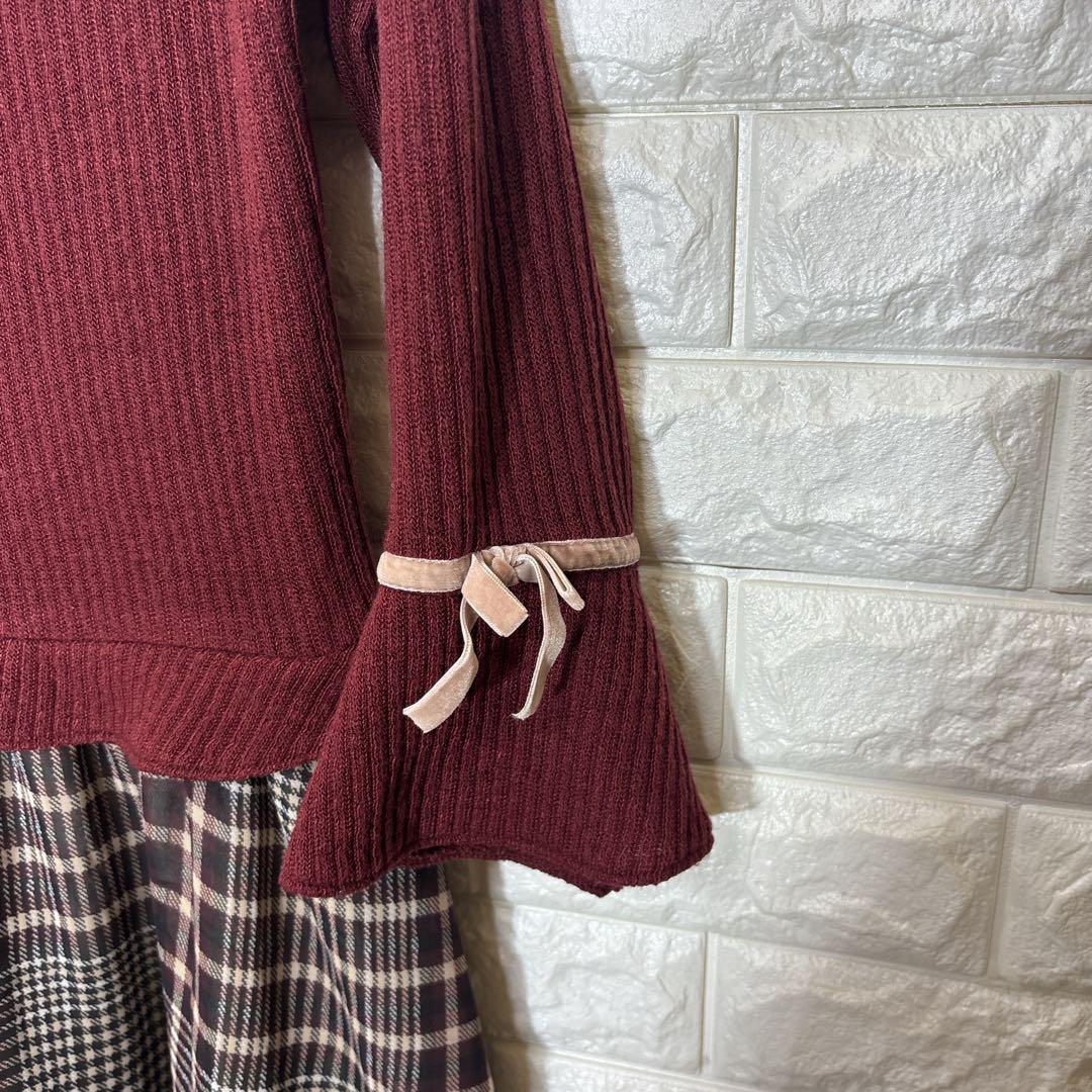 美品✨【メゾンドプリエ】長袖ひざ丈ワンピース ドッキングワンピース リブニット