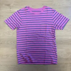 ストライプデザインの半袖Tシャツ、軽やかな素材で快適な着心地。