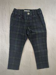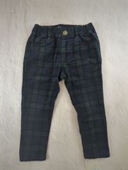 ダークブルーのストレートレッグデニム、130サイズ、バックポケット付き。