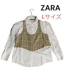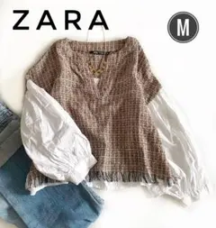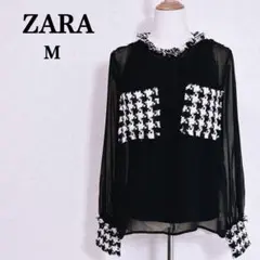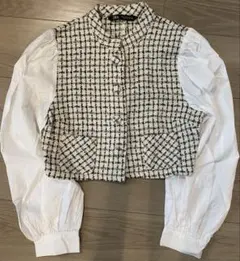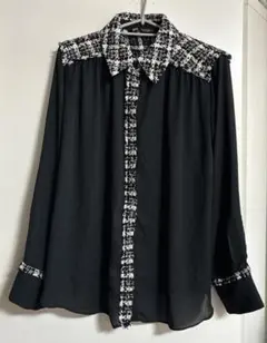 ZARA ブラック×シルバーボタン ツイード オーバーサイズシャツ