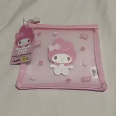 フリース素材のピンクIDポーチ、キャラクターイラスト入りで可愛らしいデザイン。