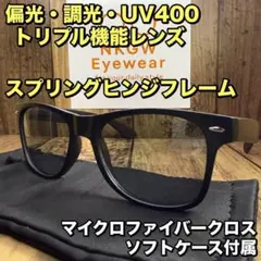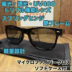 ♢完全新品未使用 偏光サングラス スモークブラックレンズ ウェリントン型 スプリングヒンジ 軽量✨