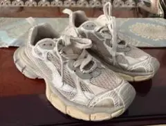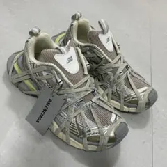 このスニーカーは、グレーのメッシュ素材で作られており、通気性が良く、軽量です。デザインはシンプルでありながら、スタイリッシュな印象を与えます。