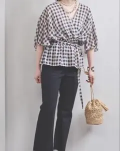 【ユナイテッドアローズ】黒 トップス 半袖 シャーリング 総柄 編み上げ