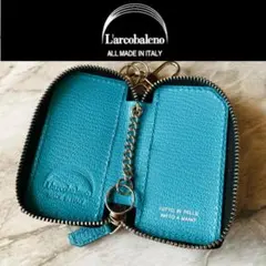 【ラルコバレーノ】新品 別注 山羊革 スマートキーケース ブラック×ターコイズ