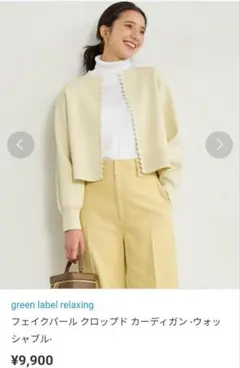 ユナイテッドアローズ 七分袖カーディガン 水色 薄手リブニット コットンUネック