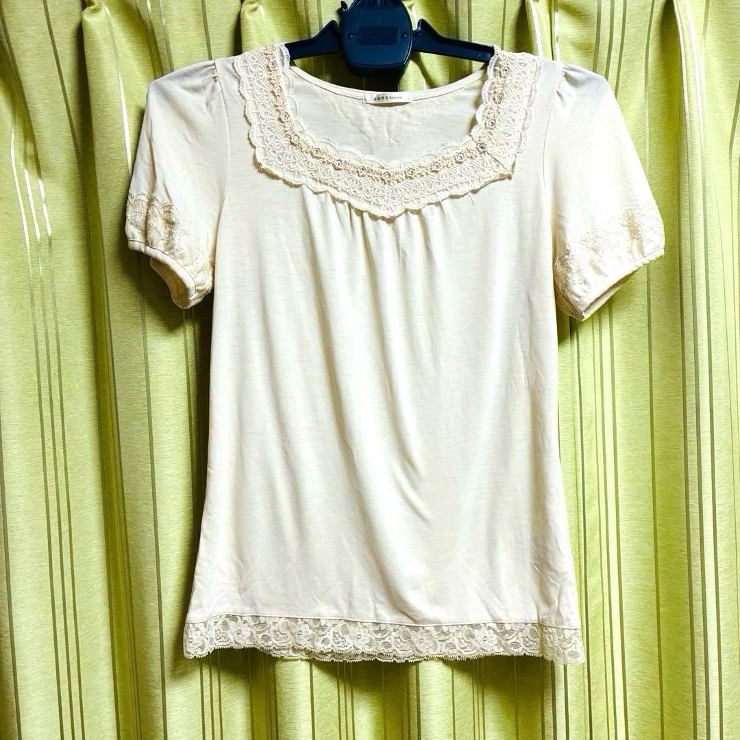 axes femme アイボリー 半袖 Tシャツ レースカットソー 姫カジ