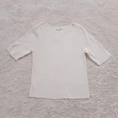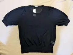 ゆったりとした七分袖のパープルニットセーター。袖はポリエステルのサラサラした生地