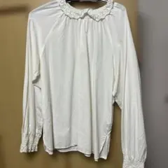 ホワイト レース編み 長袖ブラウス Lサイズ ローリーズファーム