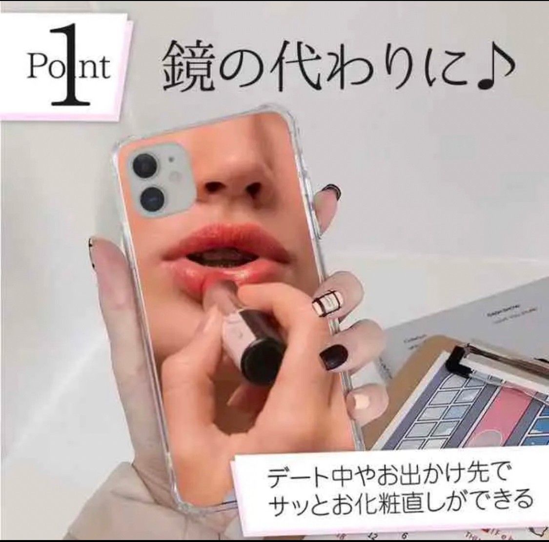 背面には鏡面加工が施されているので、ちょっとしたお化粧直しや身だしなみチェック等にも大活躍です。