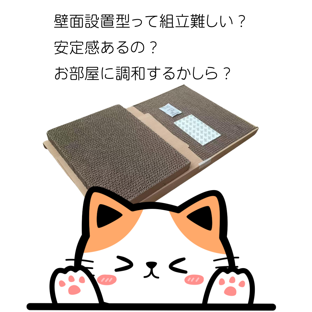 省スペースで使える「猫爪とぎウォール型」は、マンションや一人暮らしのお部屋でも場所を取らず、壁遊び感覚で猫が楽しく使える点もポイントです。壁に設置することで爪とぎ跡が家具や壁紙に広がるのを防ぎ、大切なお部屋を保護する役割も果たします。