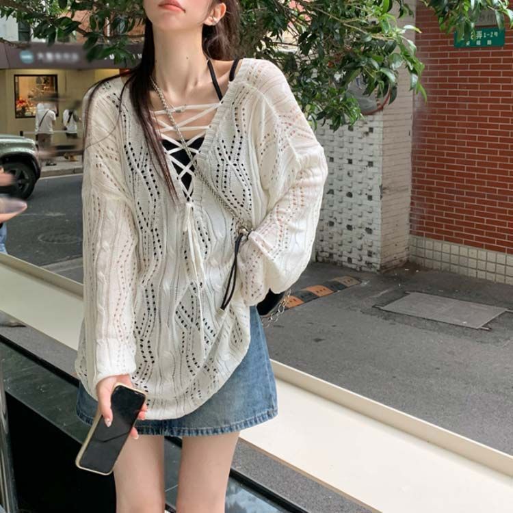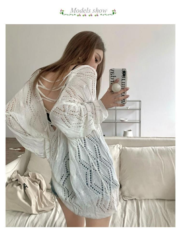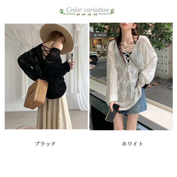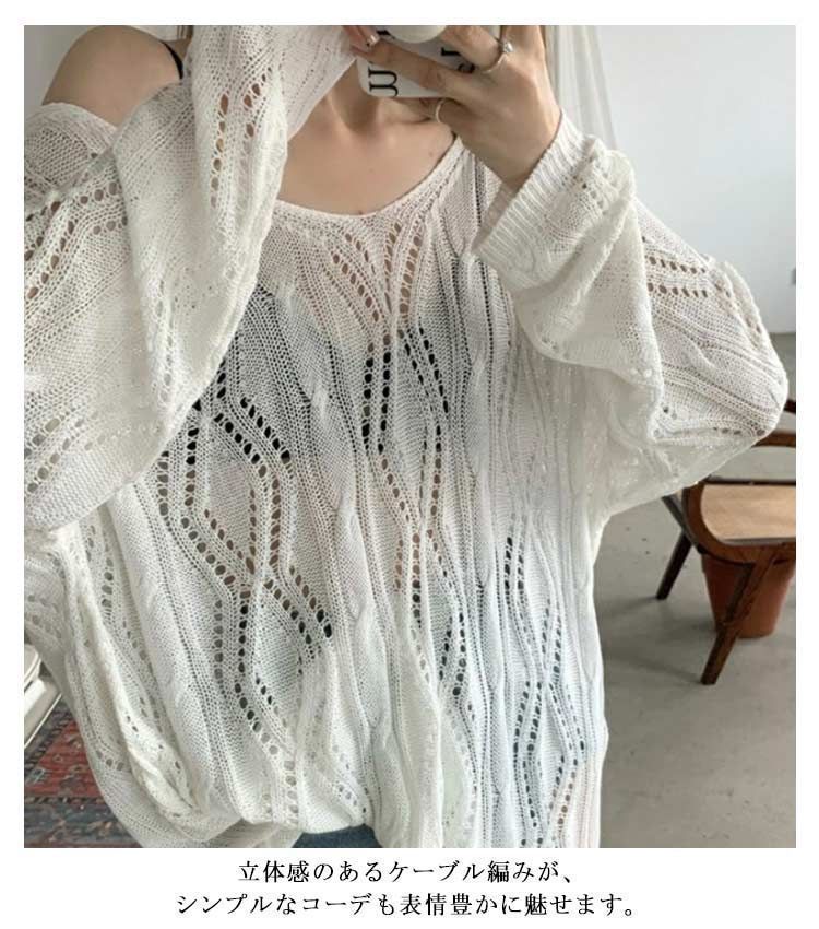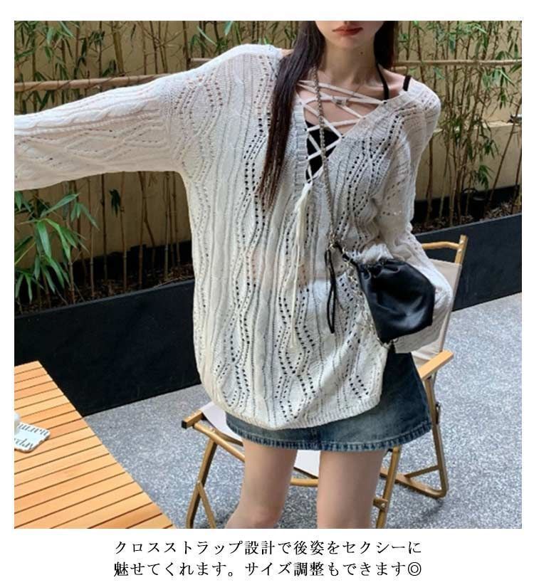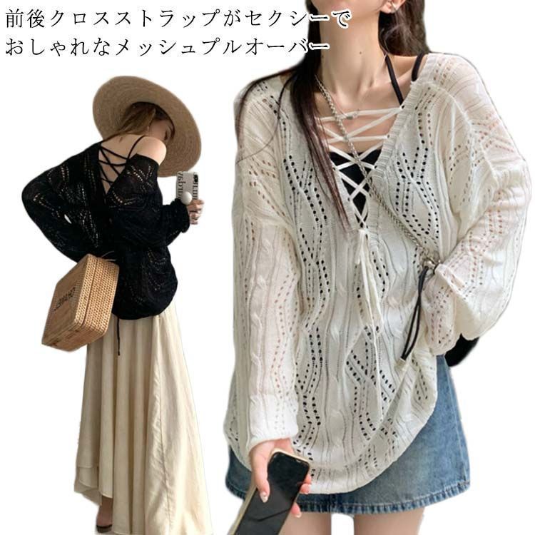 メッシュニット クロス ストラップ 透かし編み ボートネック メッシュ ニット レディース 長袖 トップス プルオーバー ロング ゆったり ニ
