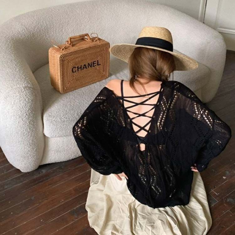 前後クロスストラップがセクシーでおしゃれなメッシュプルオーバー
