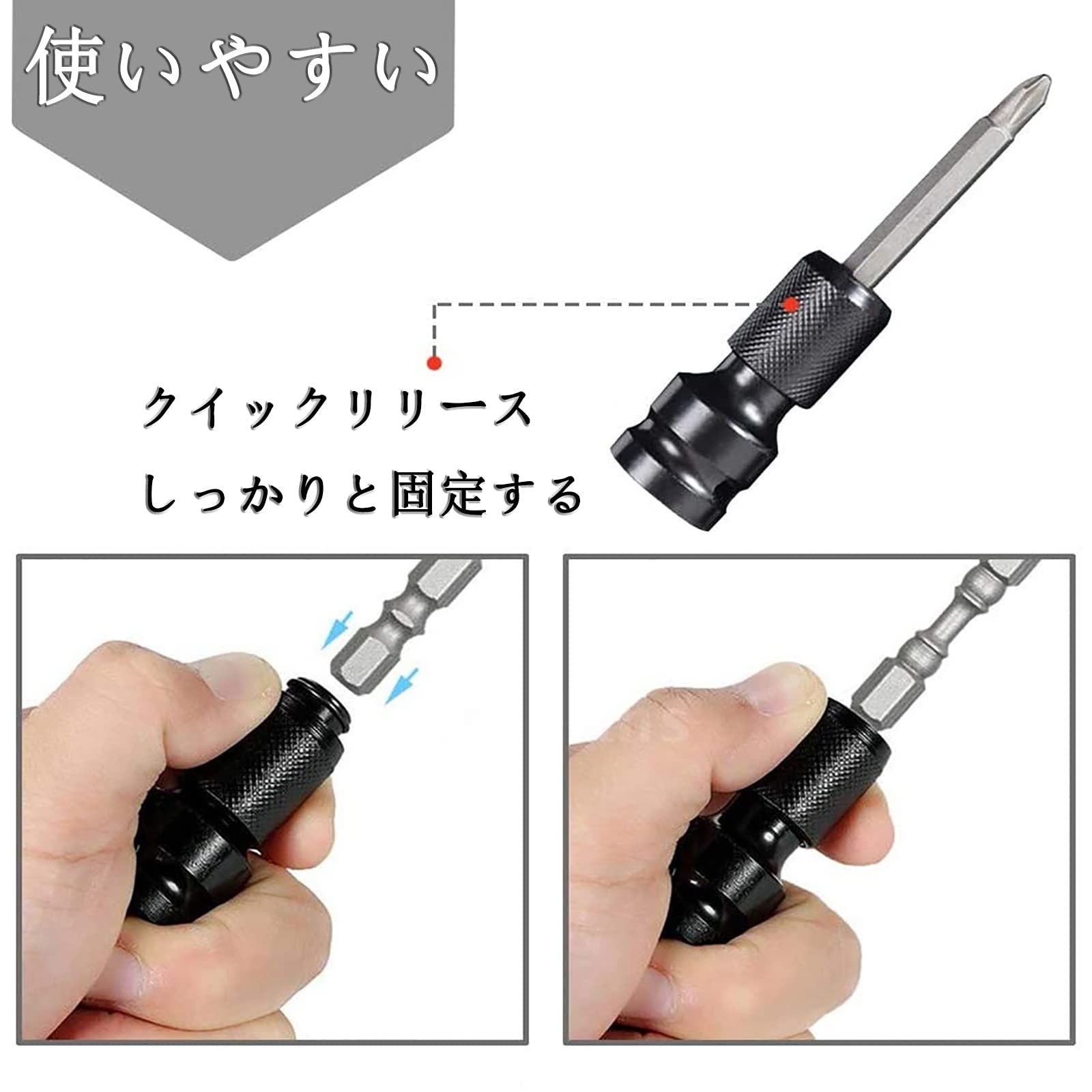 ソケットアダプター 1/2 四角-1/4 六角 アダプター六角軸用 ソケットアダプター 急速に転換 スライドロック式 差込角変換アダプター インパクトレンチ用 ワッシャーとプラグ付き