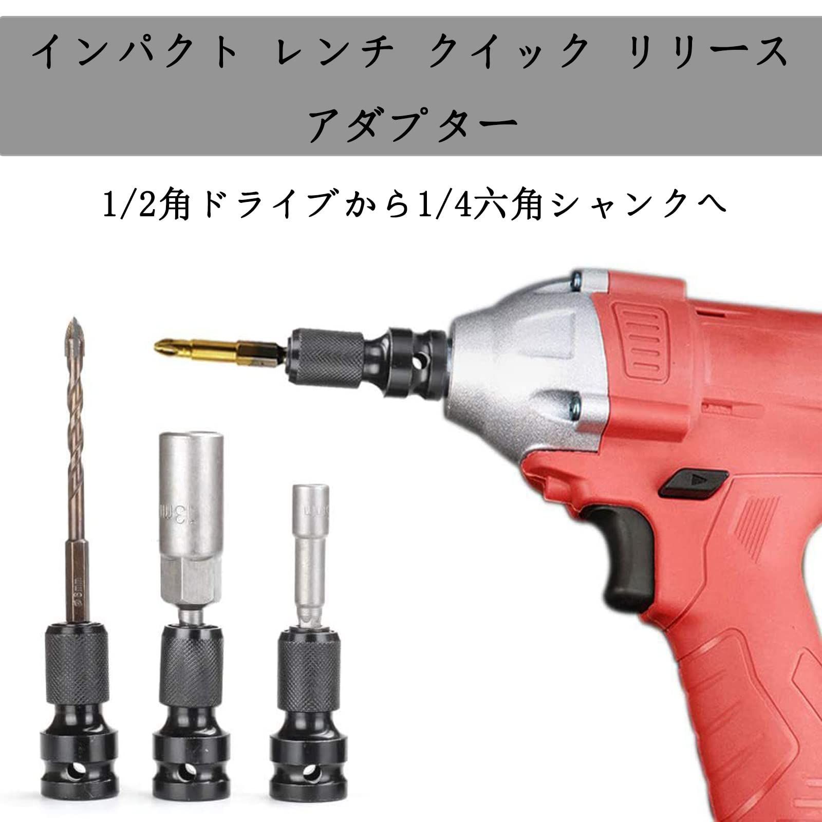 【在庫処分】ソケットアダプター 1/2 四角-1/4 六角 アダプター六角軸用 ソケットアダプター 急速に転換 スライドロック式 差込角変換アダプター インパクトレンチ用 ワッシャーとプラグ付き