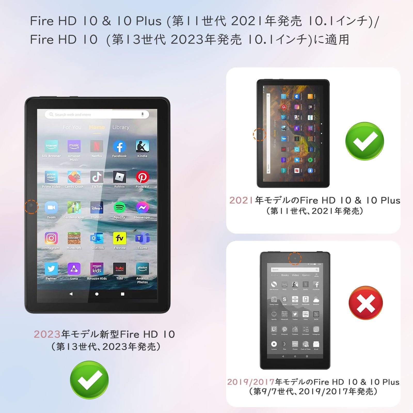 「対応機種」 2023年新発売のFire HD 10(第13世代)/ 2021年発売のFire HD 10 & Fire HD 10 Plus(第11世代) 10.1インチ 向けの専門デザインです。他の機種に対応できませんので、ご購入前に必ずお手元のタブレットの機種をご確認ください。