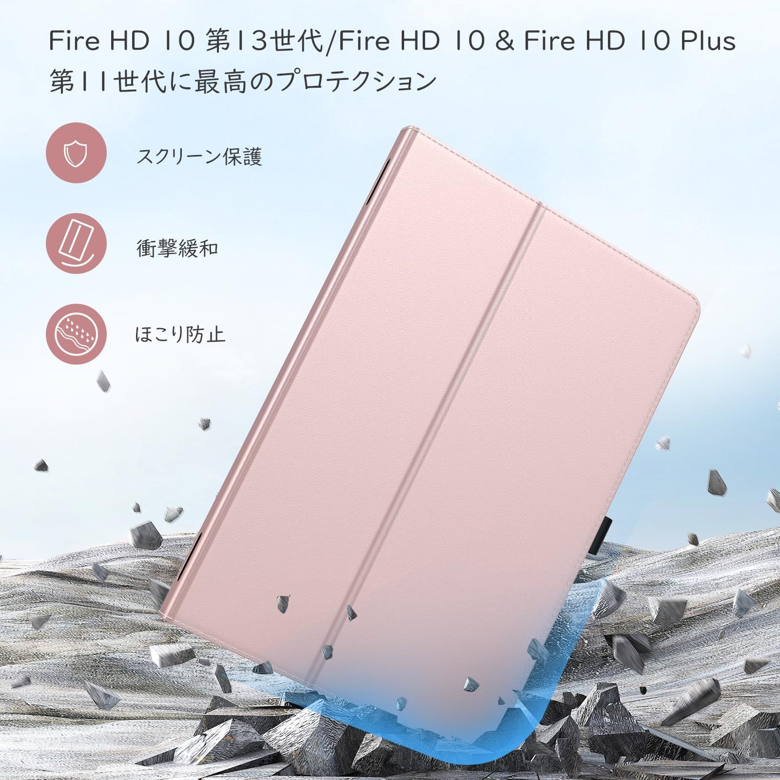Fire HD10 ケース 第13世代-2023年発売/Fire HD10 & HD10 Plus ケース 第11世代-2021年発売 TiMOVO fire hd10 タブレットカバー 第13世代/第11世代 10.1インチ fire hd10Plus タブレットカバー 第11世代 PUレザー スタンドケース オートスリープ 手帳型 マグネット内蔵 衝撃吸収 全面保護 軽量 軽量 ローズゴールド