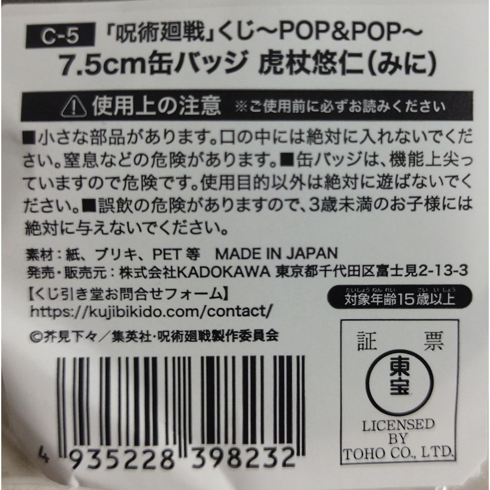 虎杖悠仁 缶バッジ 呪術廻戦 ( #12915 )