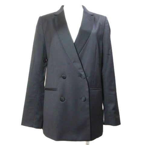 ナノユニバース nano universe ダブルジャケット ウール混 総裏地 36 S相当 黒 ブラック X