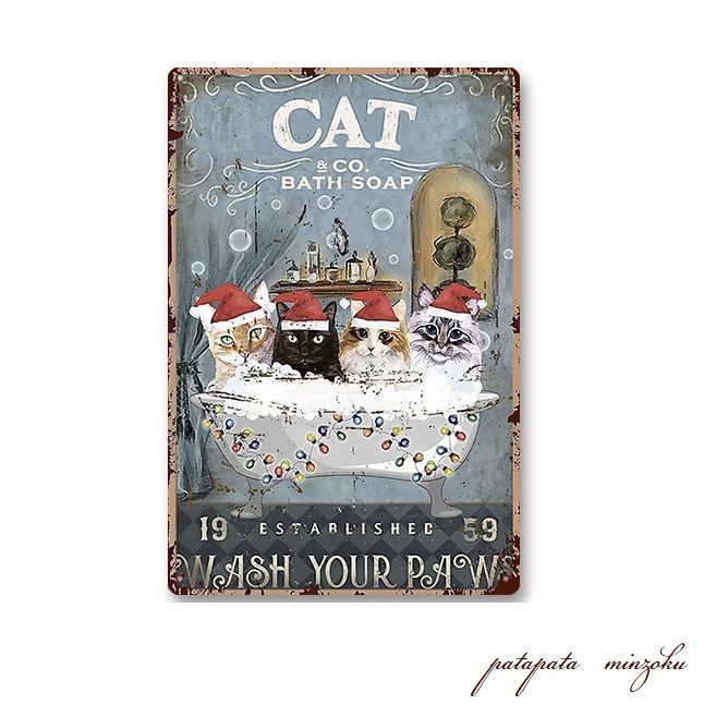 サンタクロース クリスマス 猫 メタルプレート ブリキ看板 アンティーク調 ねこ ネコ カフェ ウォールプラッケ ウォールサイン プレート 店舗什器 カフェ 看板 ディスプレイ オブジェ 小物 雑貨 パタパタ民族