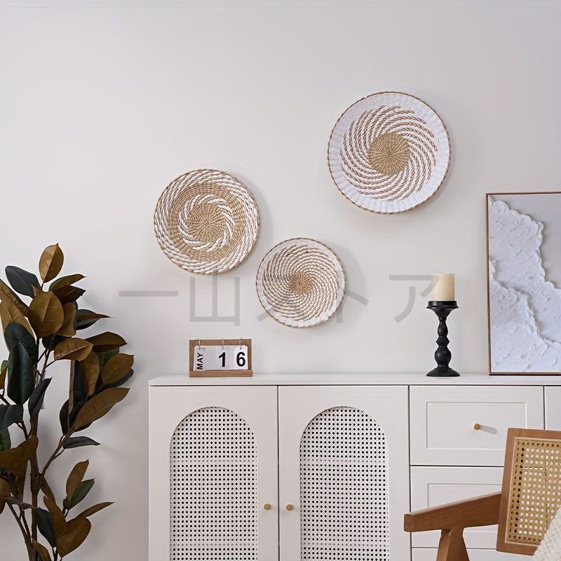 壁掛けインテリア 丸型 バスケット ウォールインテリア かご 籠 壁飾り アートパネル サークル 装飾 ホワイト 白 デコレーション ウォール