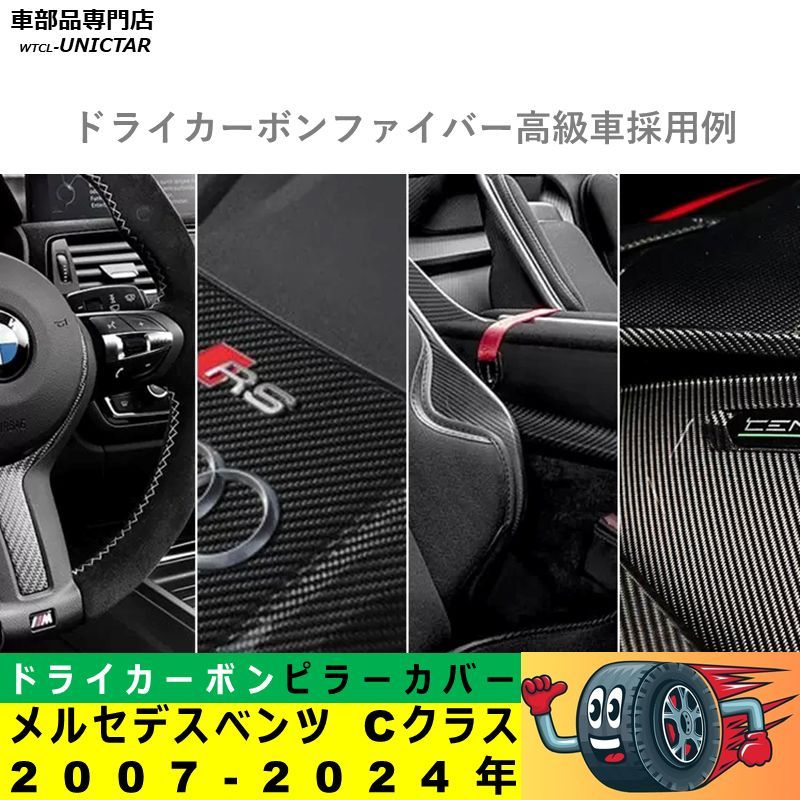 メルセデスベンツ Mercedes-Benz Bピラーカバー センター 汎用品 C級 2007-2024年適用 センター 高級ドライ式カーボンファイバー製 トリム 簡単取付